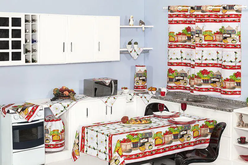 JOGO COZINHA OXFORD COM TOALHA DE MESA 4 LUGARES ESTAMPADA NOBRE